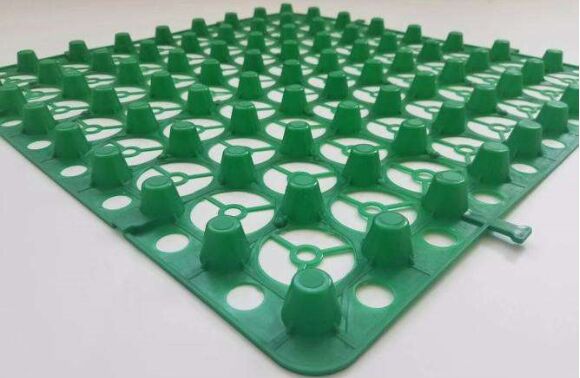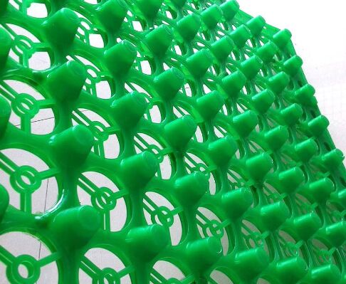 1、排水板沿車庫頂板的擋土墻開始順坡鋪設,邊緣支點相互搭接1-2個支點;或不搭接而涂膠水粘接,使排水板形成一個整體,既排水,又起到隔根的作用,同時還是一個輔助的防水層,形狀根據(jù)現(xiàn)場情況任意裁剪。